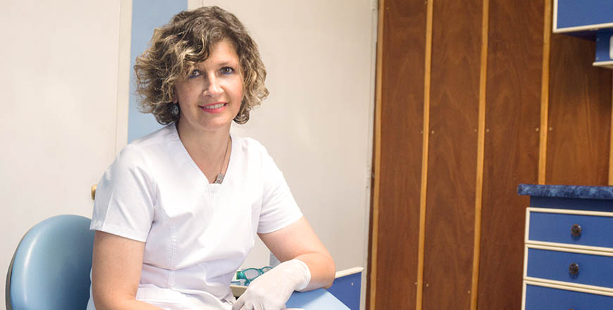 Para conocer a nuestros profesionales de odontología en CIMEK, selecciona el nombre en la parte superior de tu pantalla.